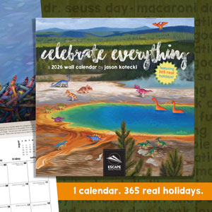 A limited edition calendar featuring Jason’s whimsical art and 365 real holidays