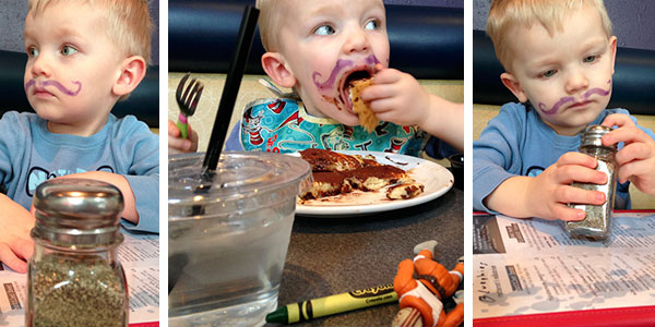 “Give me that purple marker,” I said. After glancing to confirm it was the washable variety, I removed the cap and called Ben over. Then I drew a bold and curly mustache on my son. Although he cooperated, it’s fair to say he had no idea what I was doing.