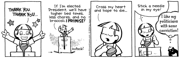 So now that you know why I should be the President, vote for me on whatever day it is that everybody gets together to vote. I hope it is soon, and I hope you please vote for me. Don't make a big misteak."