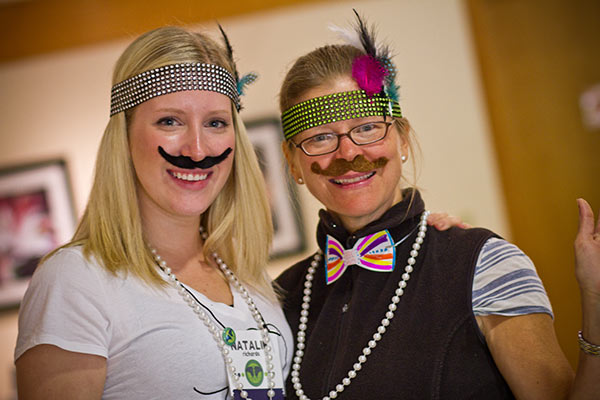 Get gussied up! We provided pearl necklaces, top hats, DIY bow ties, feather-adorned flapper girl headbands, and fake mustaches for attendees to complement their jeans and t-shirts. Feather boas and long gloves are naturals as well. Nothing wrong with requiring guests to wear real dress-up clothes, if that floats your boat. You could challenge people to come outfitted with the fanciest clothes they can find at a second-hand store, with the requirement of bringing the receipt as proof.